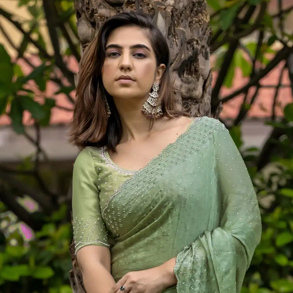 Be the first to review “Grey Chiffon Printed Saree”